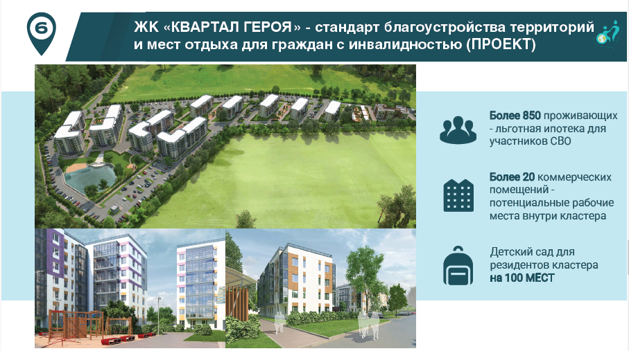 По многостороннему Соглашению в данном квартале будет выделяться жилье для целевой группы нашего учреждения: сирот и инвалидов СВО. Концепция застройки, разработана с учетом универсальной доступной среды для всех категорий граждан.